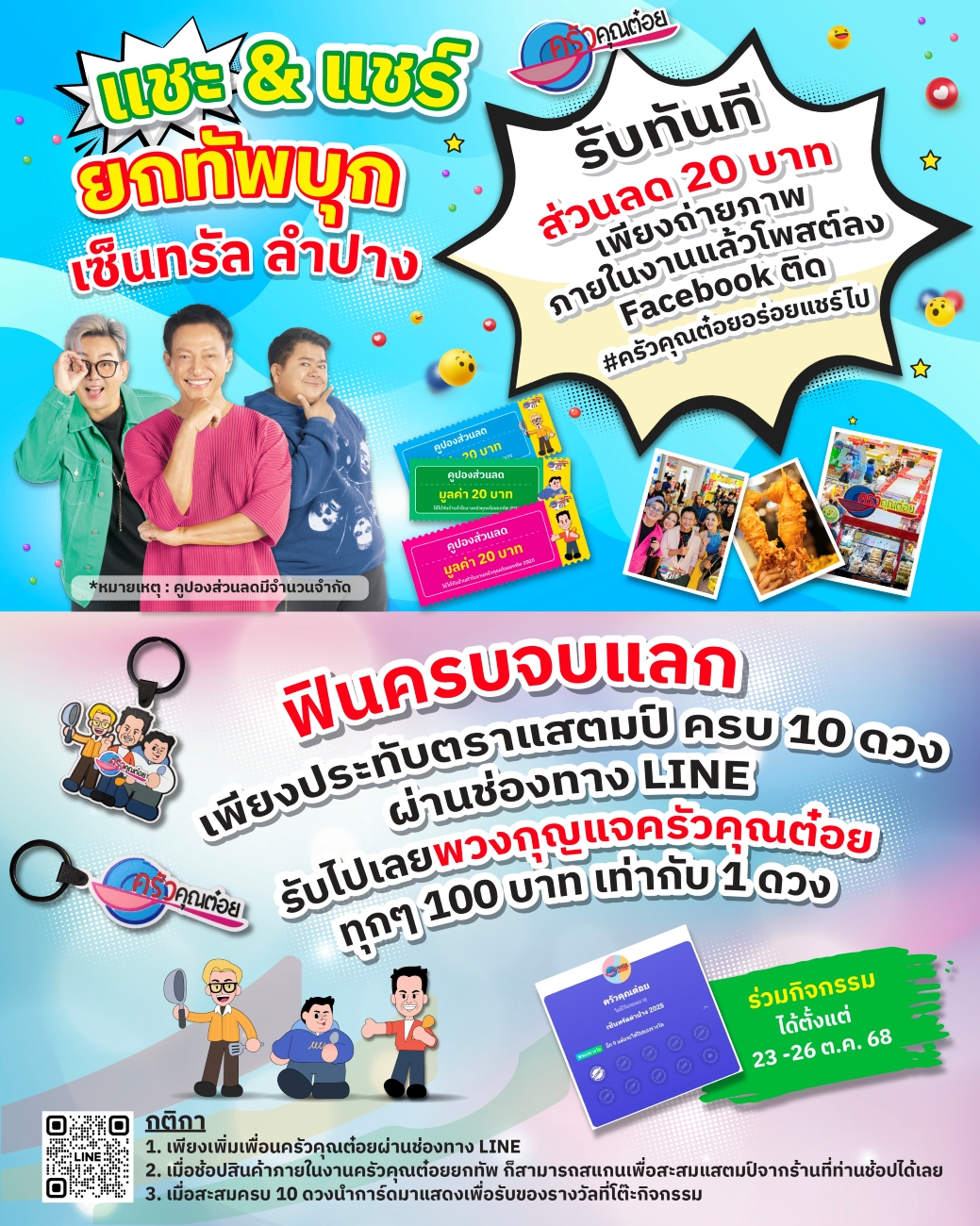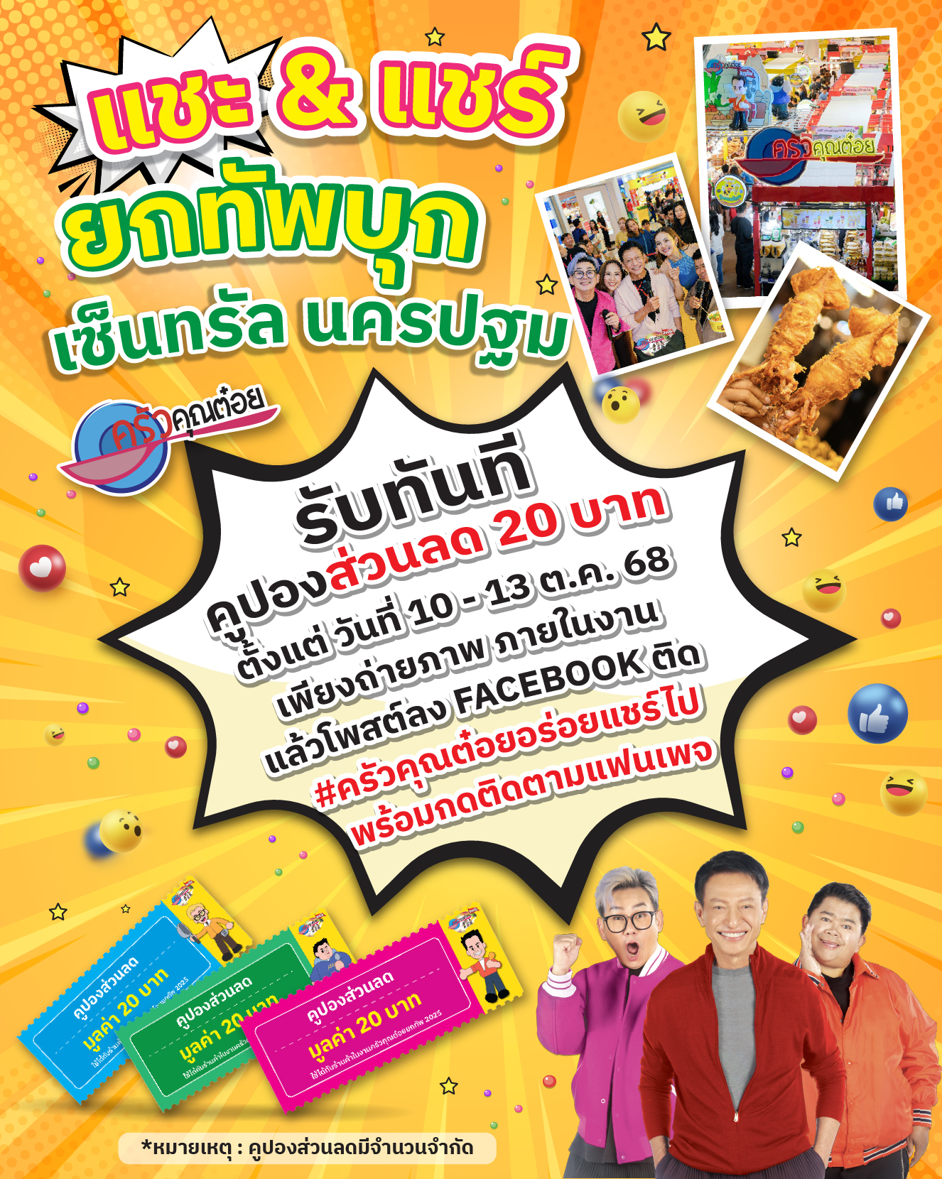60 ร้านอร่อยทั่วไทย ปลุกต่อมหิว ฟลูฟีลฟิน 7 วันเต็ม!!! “ครัวคุณต๋อยยกทัพ บุก เซ็นทรัล พระราม 3” วันที่ 2 - 8 ตุลาคม 2568 ณ ลานกิจกรรม ชั้น G