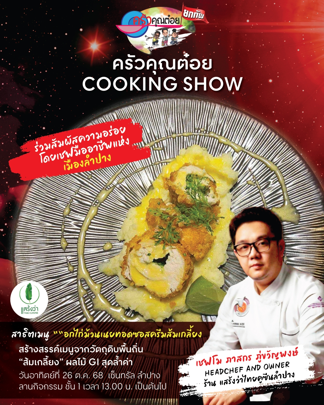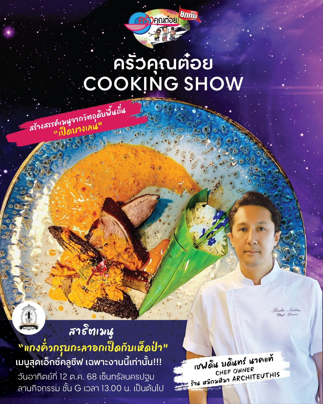 โชว์สาธิตเมนู “ข้าวขโมยแมว” "ครัวคุณต๋อยยกทัพ บุก เซ็นทรัล นครศรี" วันเสาร์ที่ 30 สิงหาคม 2568 เวลา 13.00 น. เป็นต้นไป