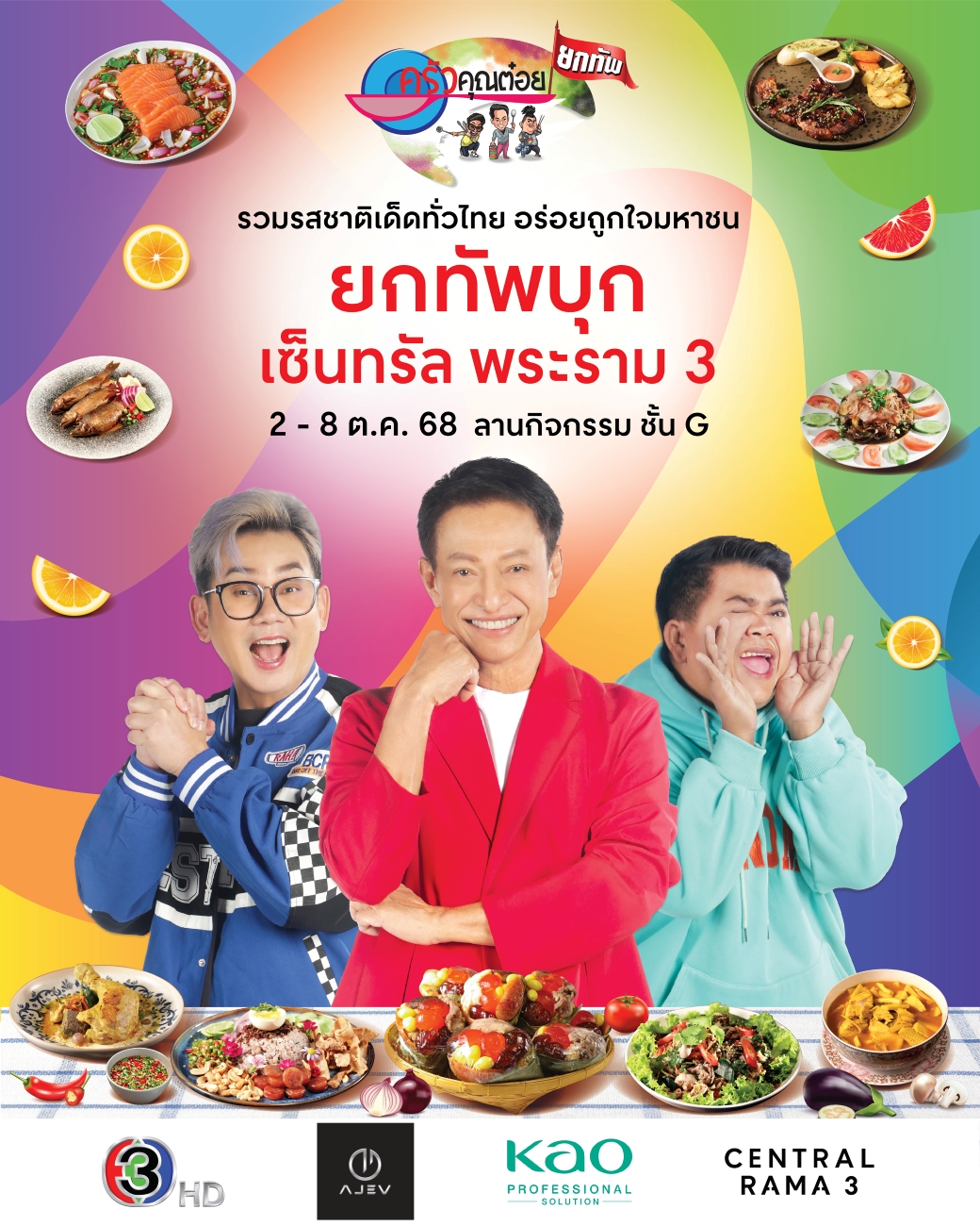 พระราม 3 ฟินแน่! “ครัวคุณต๋อยยกทัพ บุก เซ็นทรัล พระราม 3” กระตุกต่อมหิวเตรียมมาชิลกันที่งาน “ครัวคุณต๋อยยกทัพ” ครั้งแรกกับงานอาหารสุดยิ่งใหญ่ เสิร์ฟสายกินฟินจุใจตลอด 7 วันจัดเต็ม วันที่ 2 – 8 ตุลาคม 2568 ณ ลานกิจกรรม ชั้น G