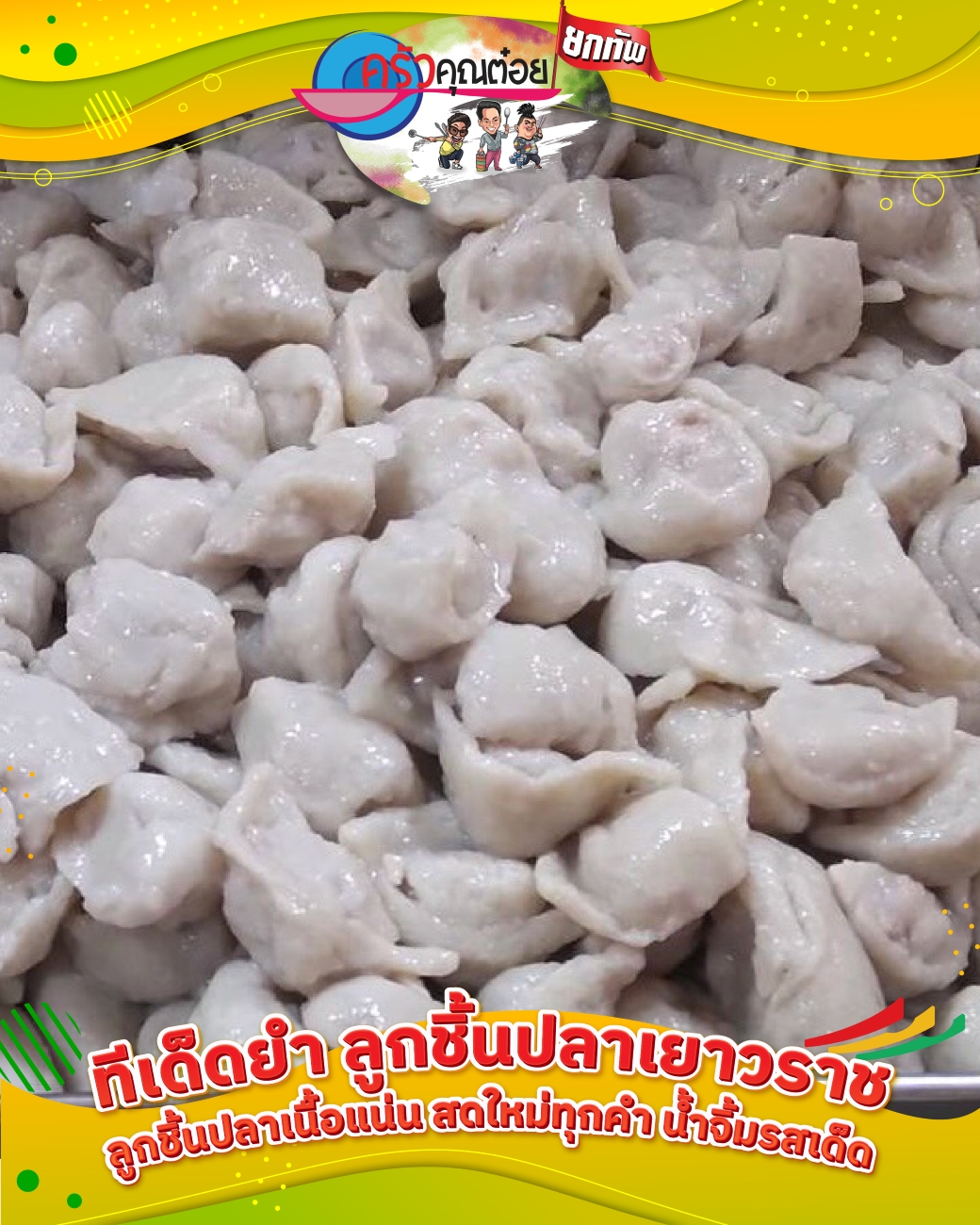 ฟินครบจบเเลก เพียงช้อปอาหารในงานครัวคุณต๋อยครบ 10 คะแนน ผ่านช่องทาง LINE รับไปเลยพวงกุญแจลิมิเต็ดครัวคุณต๋อย ทุก ๆ 100 บาท เท่ากับ 1 คะแนน ตั้งแต่วันที่ 20 – 23 กุมภาพันธ์ 2569 (สินค้ามีจำนวนจำกัด)