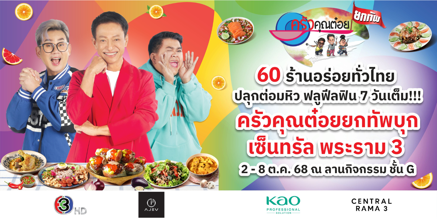60 ร้านอร่อยทั่วไทย ปลุกต่อมหิว ฟลูฟีลฟิน 7 วันเต็ม!!! “ครัวคุณต๋อยยกทัพ บุก เซ็นทรัล พระราม 3” วันที่ 2 – 8 ตุลาคม 2568 ณ ลานกิจกรรม ชั้น G
